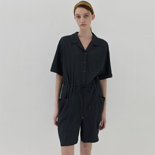 오픈카라 유틸리티 점프 수트입니다. 모던한 컬러로 캐주얼한 점프 수트입니다.
