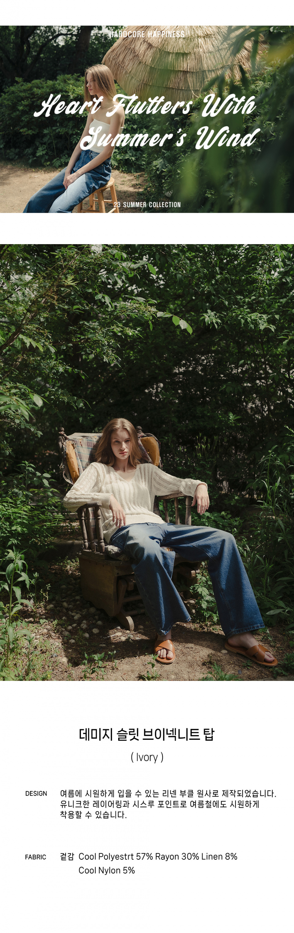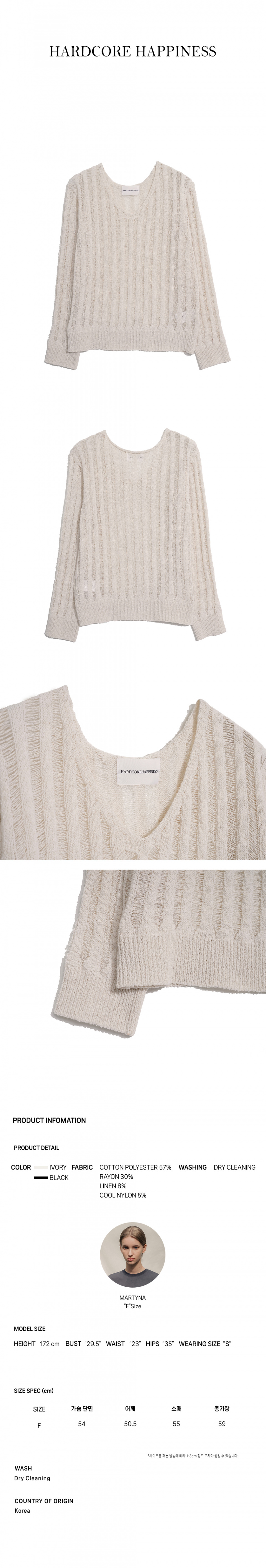 데미지 슬릿 브이넥 니트 탑_IVORY