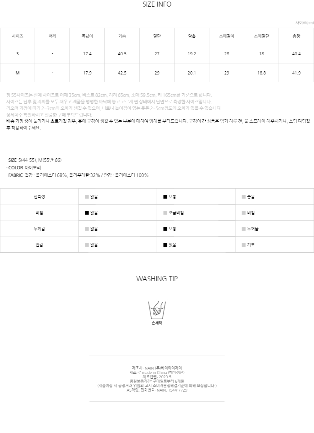 체형에 따라 사이즈가 상이할 수 있으므로 반드시 하단 상세 사이즈표를 참고하시기 바랍니다.