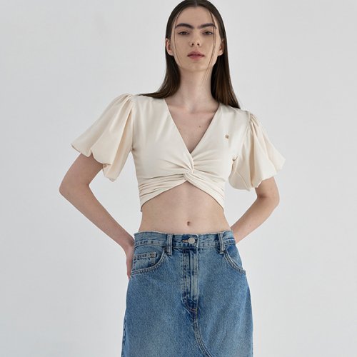 깊은 V네크와 꼬임디테일로 센슈얼한 무드까지 느끼실 수 있으며 심볼 금속장식으로 더욱 고급스러운 포인트를 주었습니다.