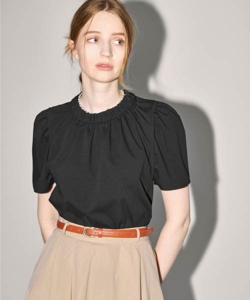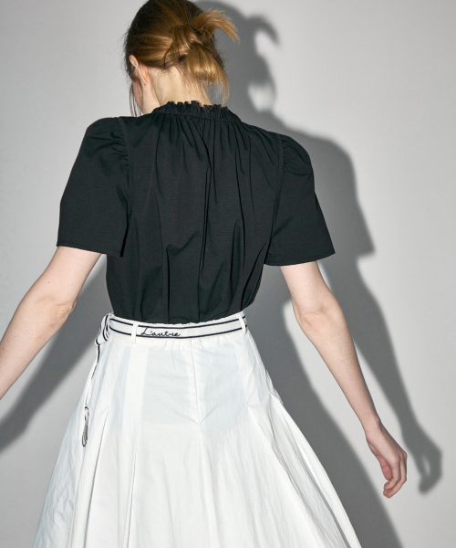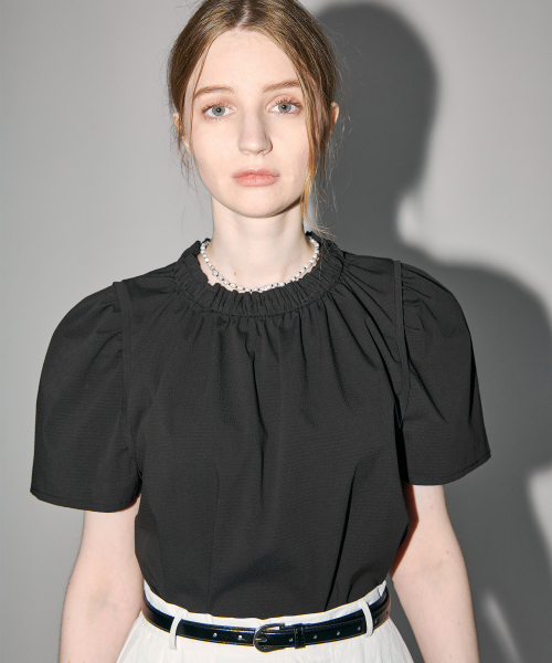 네크가 전체 밴딩으로 되어있고, 소매의 볼륨감이 있어서 전체적으로