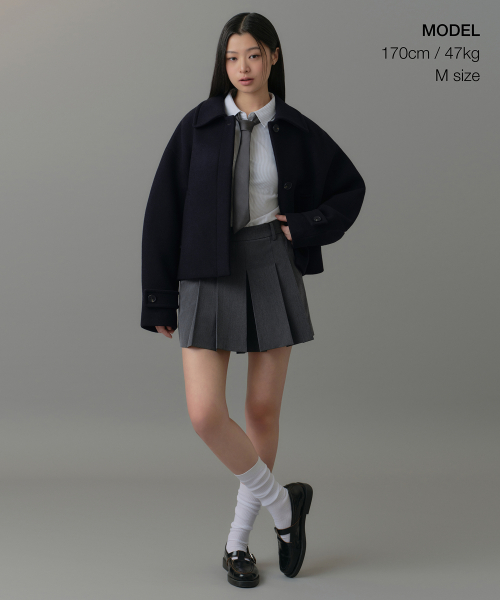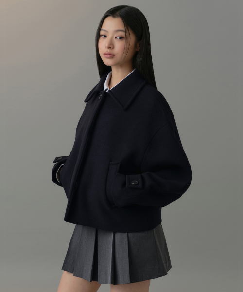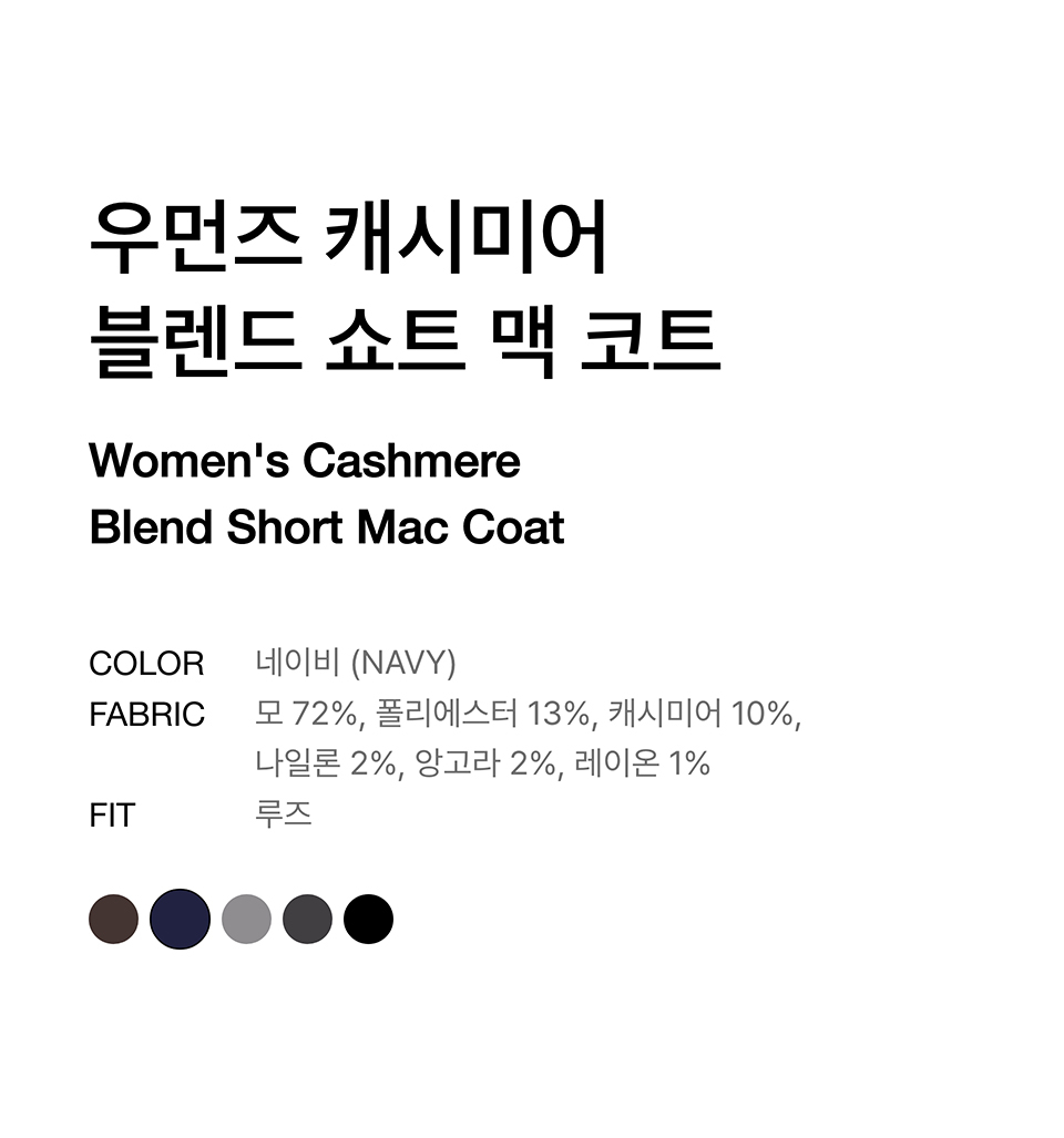 우먼즈 캐시미어 블렌드 쇼트 맥 코트 [네이비]