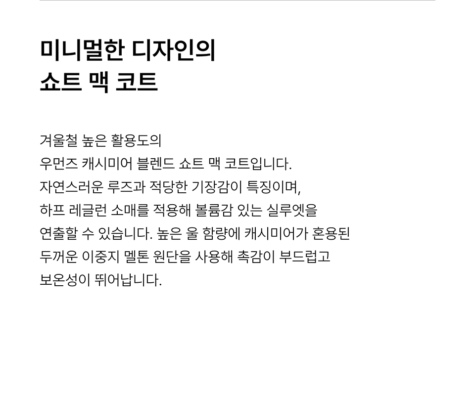 우먼즈 캐시미어 블렌드 핸드메이드 쇼트 맥 코트 [블랙]
