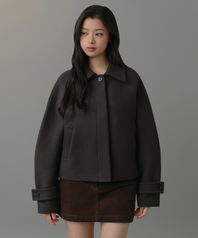 우먼즈 캐시미어 블렌드 쇼트 맥 코트 [건메탈]