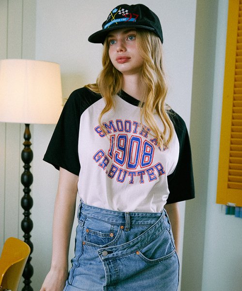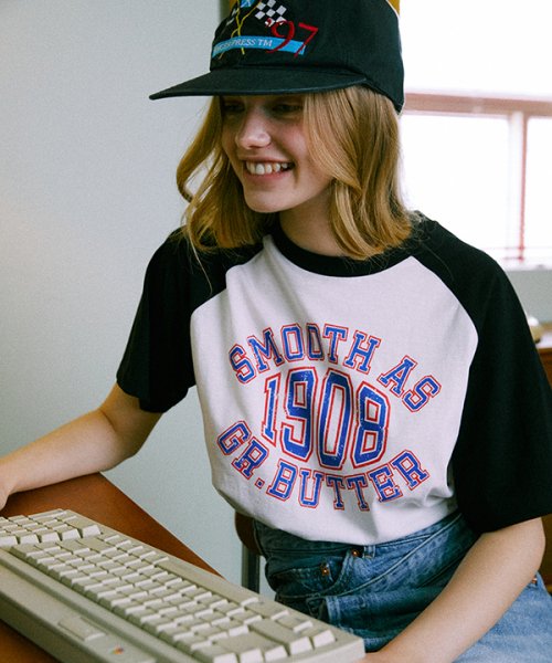 Raglan Sleeve Cookie T-shirt (Cobalt blue/Red)