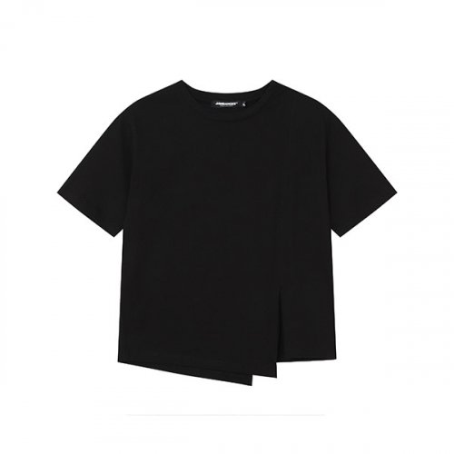 여성) 절개 언발란스 트임 반팔티셔츠_AN2WTS359-BK