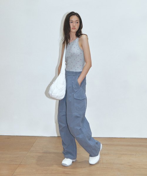 우먼즈 루즈 트라페즈 밴딩 데님 팬츠 [미디엄 인디고]