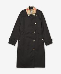 롱 체크 칼라 개버딘 W 트렌치 코트 - 블랙 / 8089811