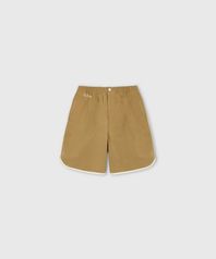 매트한 발수 텍스처의 스윔 쇼츠입니다. 밀도높은 피치스킨 패브릭의 유니크한 발색이 매력적입니다. 밑단에 대비되는 텍스처의 바인딩이 더해져있고, 지퍼 플라이, 스냅버튼 여밈으로 스윔팬츠는 물론 데일리 웨어로도 착용할 수 있습니다. 전면부에 실루엣 포켓이 있으며 허리라인에 밴드와 드로코드가 삽입되어 있습니다. 내부에는 메쉬 소재의 라이닝을 사용하여 여름철 쾌적한 착용이 가능합니다.