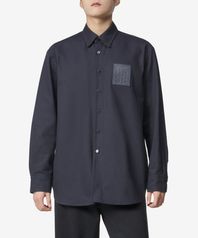 스트레이트 핏 레더 패치 데님 셔츠 - 다크 네이비 / 231M2420044