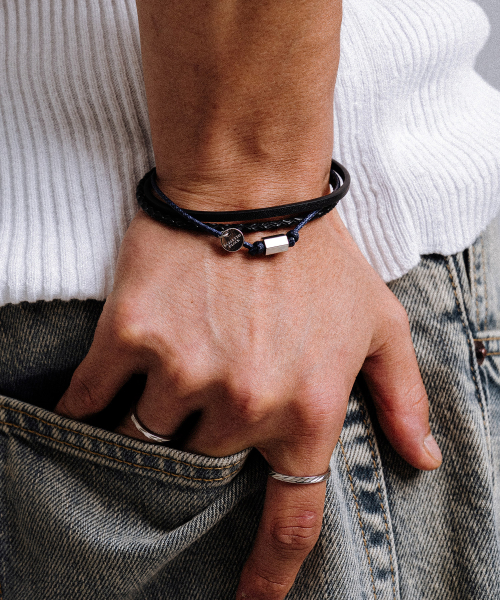 BW001 [써지컬스틸] 베이직 레이어드 레더 팔찌
