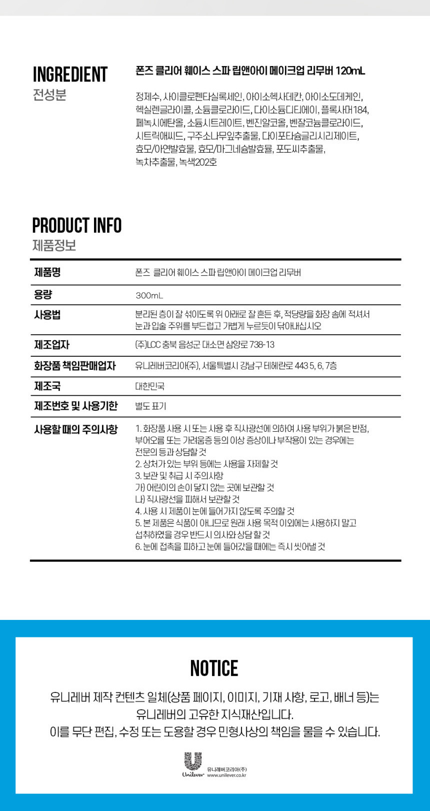 화장솜 증정) 훼이스 스파 립&아이 리무버 120ml 2개