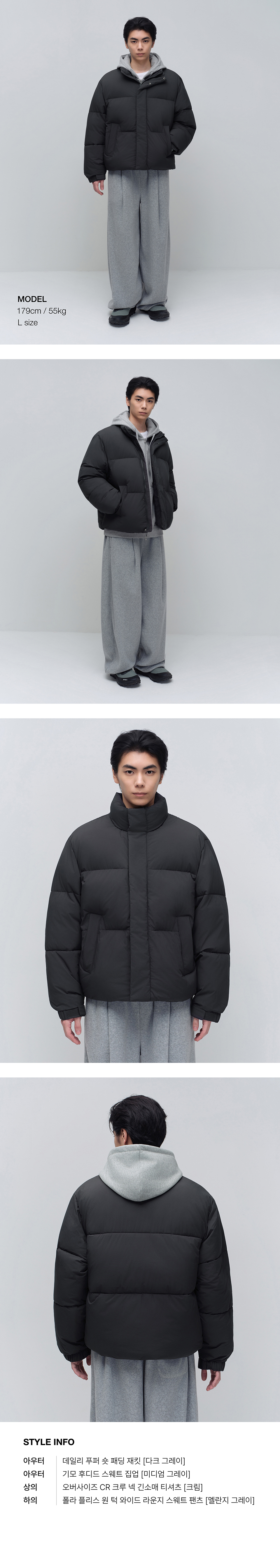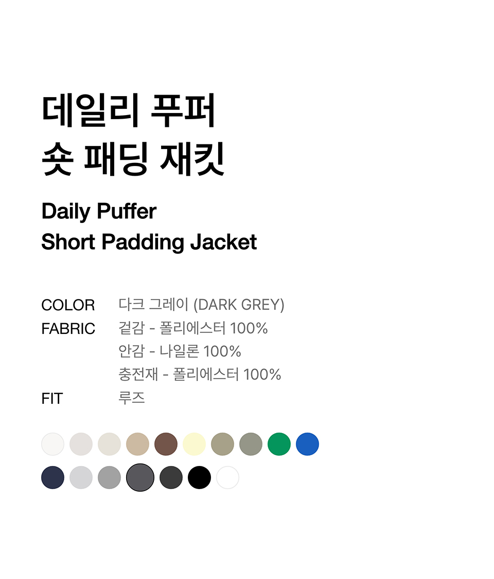 데일리 푸퍼 숏 패딩 재킷 [다크 그레이]