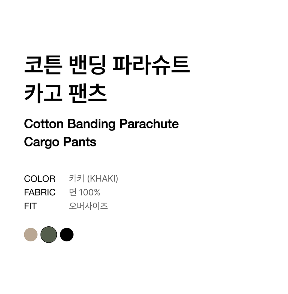 코튼 밴딩 파라슈트 카고 팬츠 [카키]