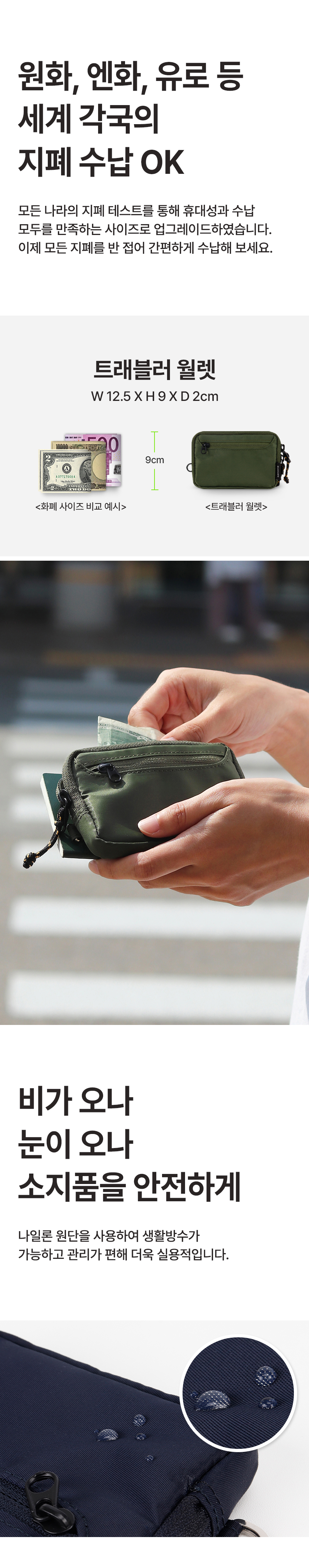 트래블러 월렛 데일리 나일론 카드 동전 여행 지갑 - 네이비
