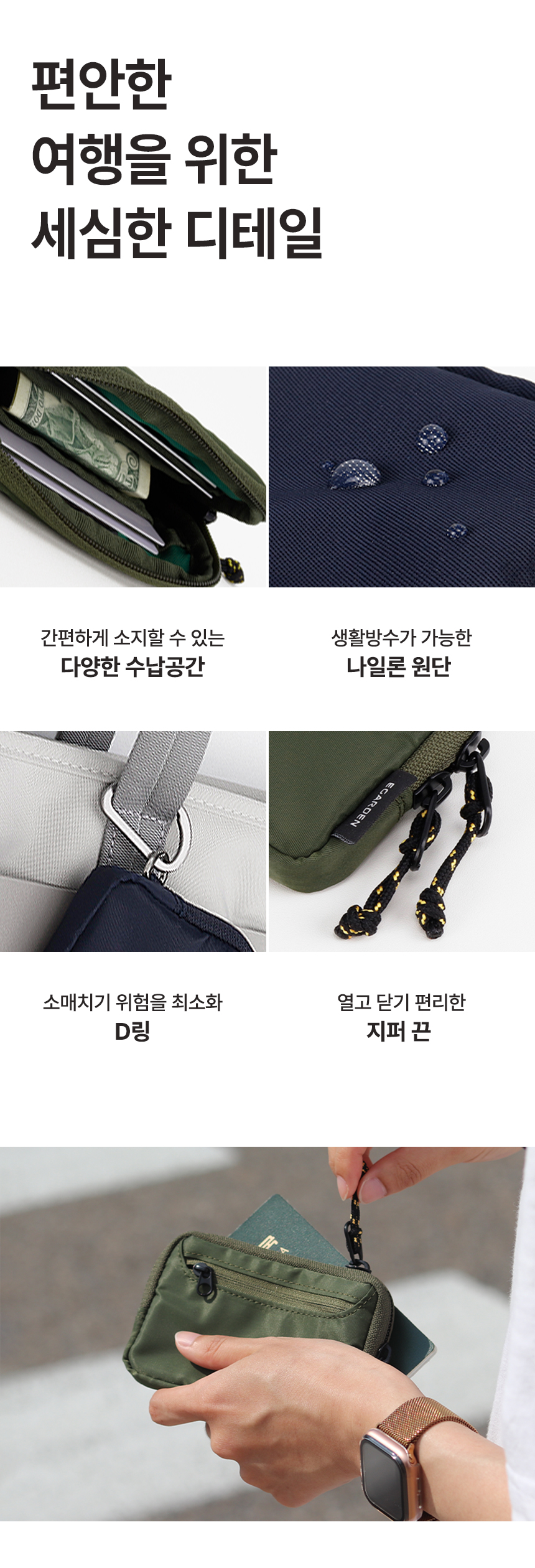 트래블러 월렛 데일리 나일론 카드 동전 지갑 - 딥그린