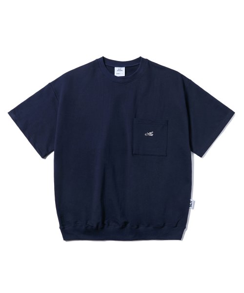 레터링 포켓 반팔 티셔츠 네이비