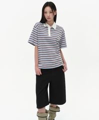 우먼즈 멀티 스트라이프 반소매 럭비 셔츠 [스카이 블루]
