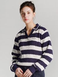 우먼즈 크롭 스트라이프 카라 니트 네이비(FCD1KT201W)