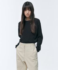 우먼즈 릴렉스드 보트 넥 긴소매 티셔츠 [블랙]