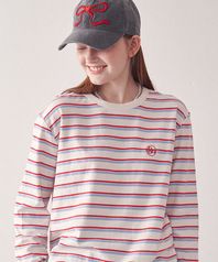 우먼즈 스트라이프 보트 넥 긴소매 티셔츠 [블랙/아이보리]