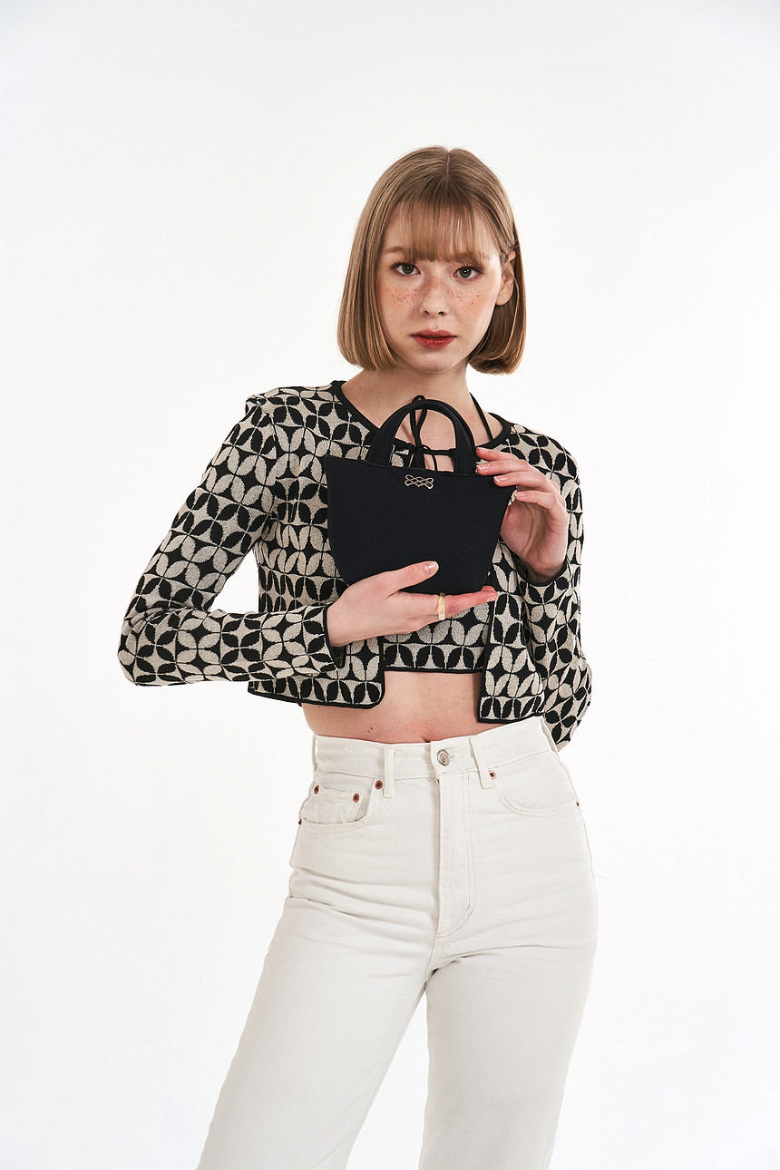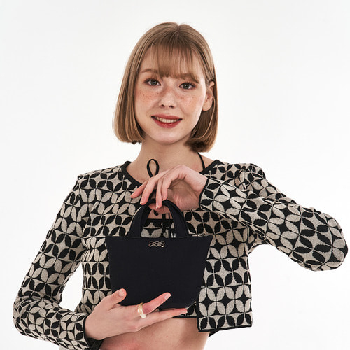 숄더 스트랩은 안쪽에서 묶어서 길이 조절이 가능하도록 하였으며, 끈을 분리하여 작은 토트로 들 수 가방입니다.
