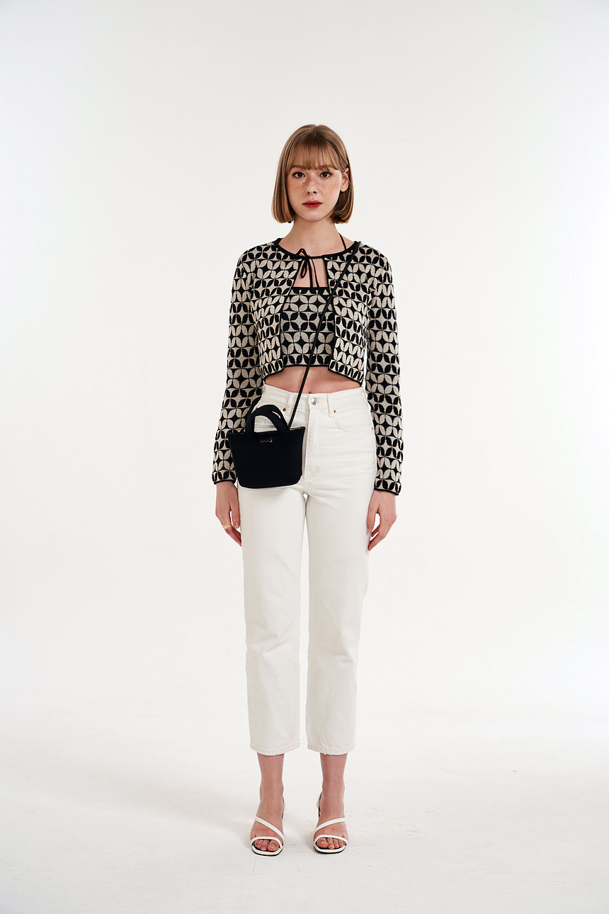 무광 블랙 지퍼와 블랙 아일릿으로 되어 있습니다.