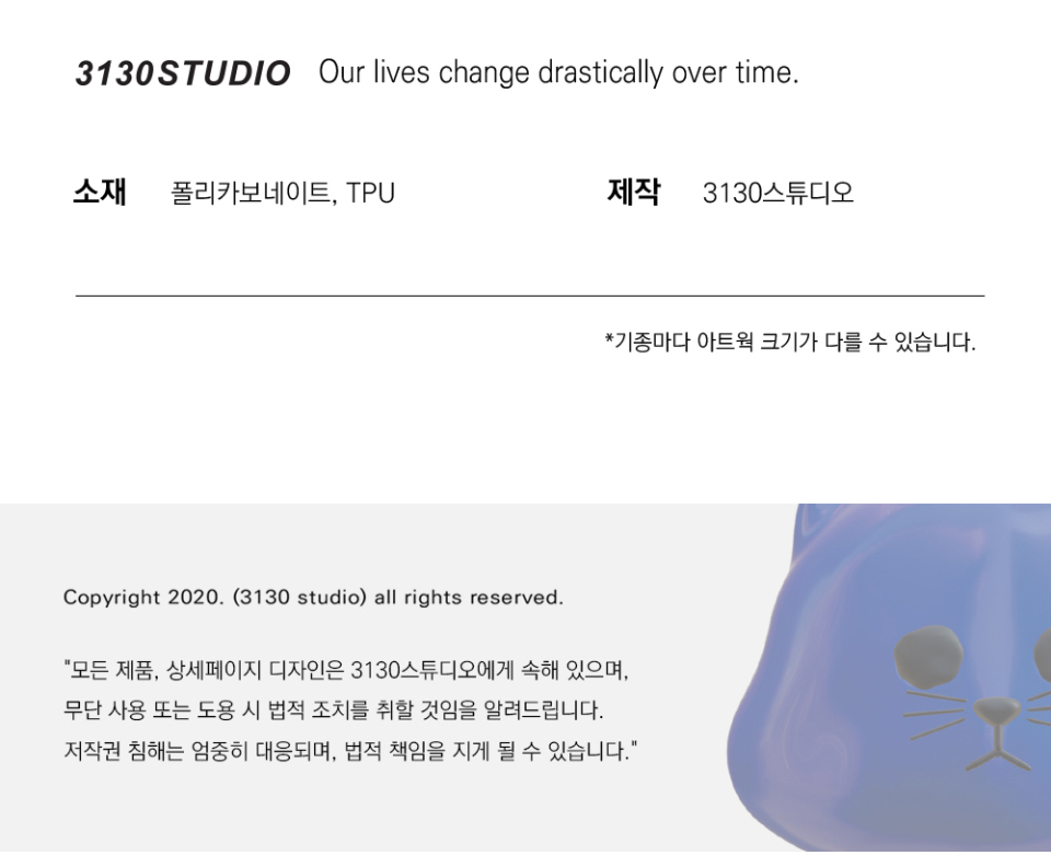 3130스튜디오(3130STUDIO)는 파란색 선글라스를 쓴 고양이, 블루 캣이 전달하는 아트워크 브랜드입니다.