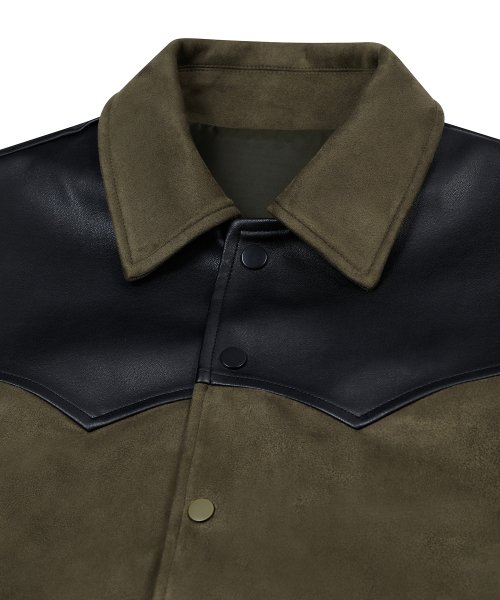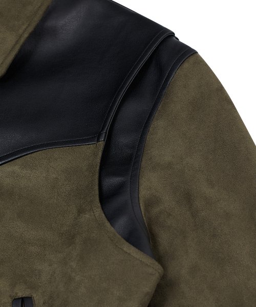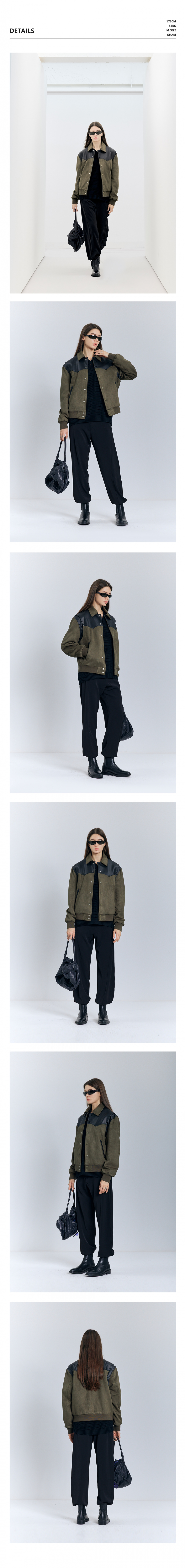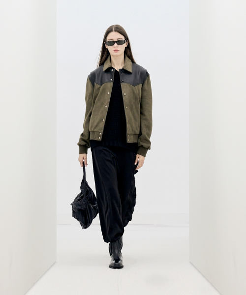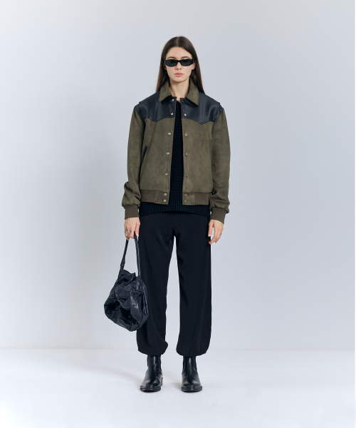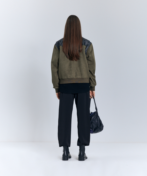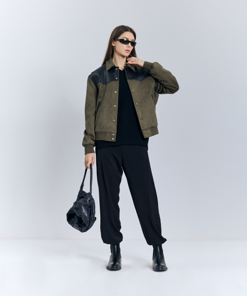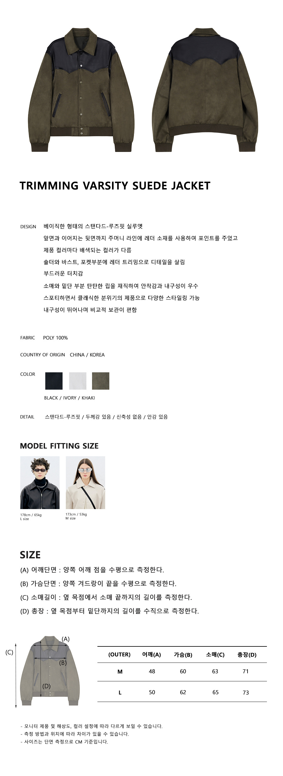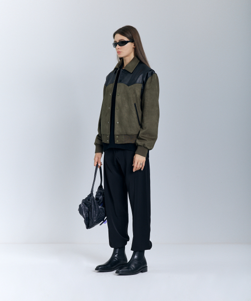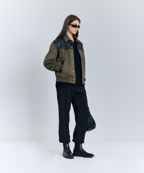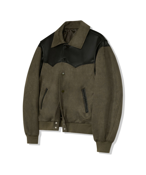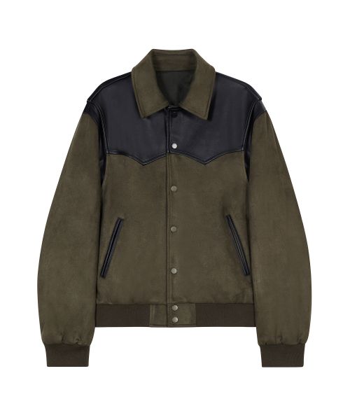 86-IRO197 트리밍 바시티 스웨이드 자켓 카키