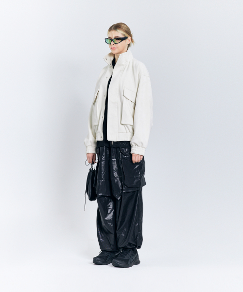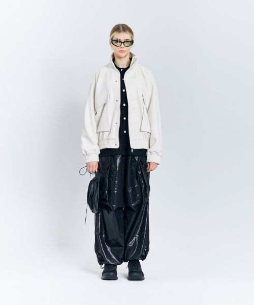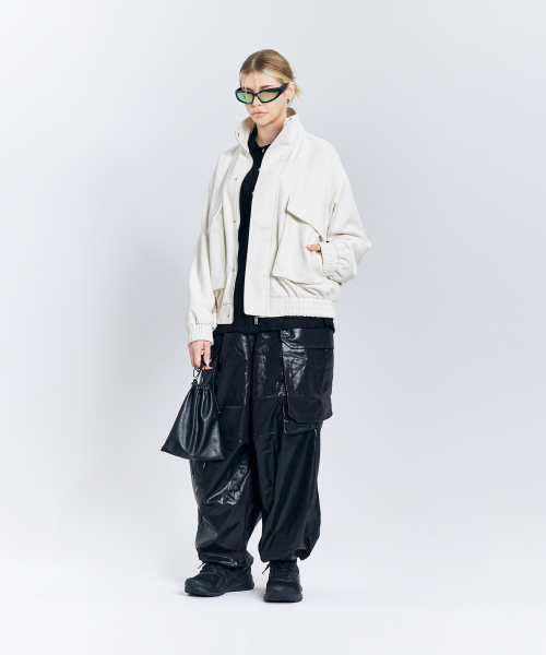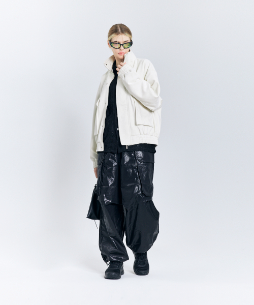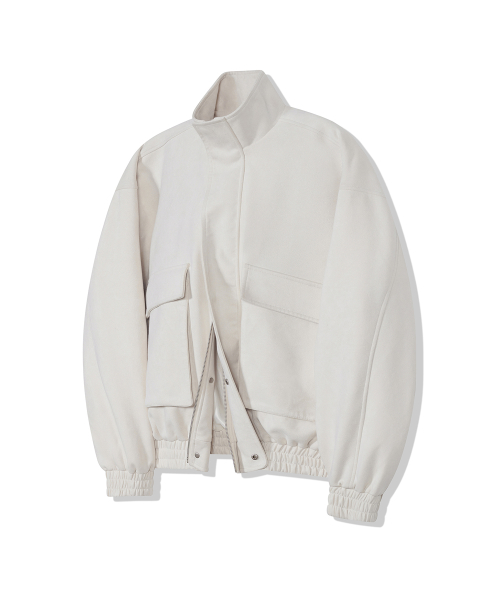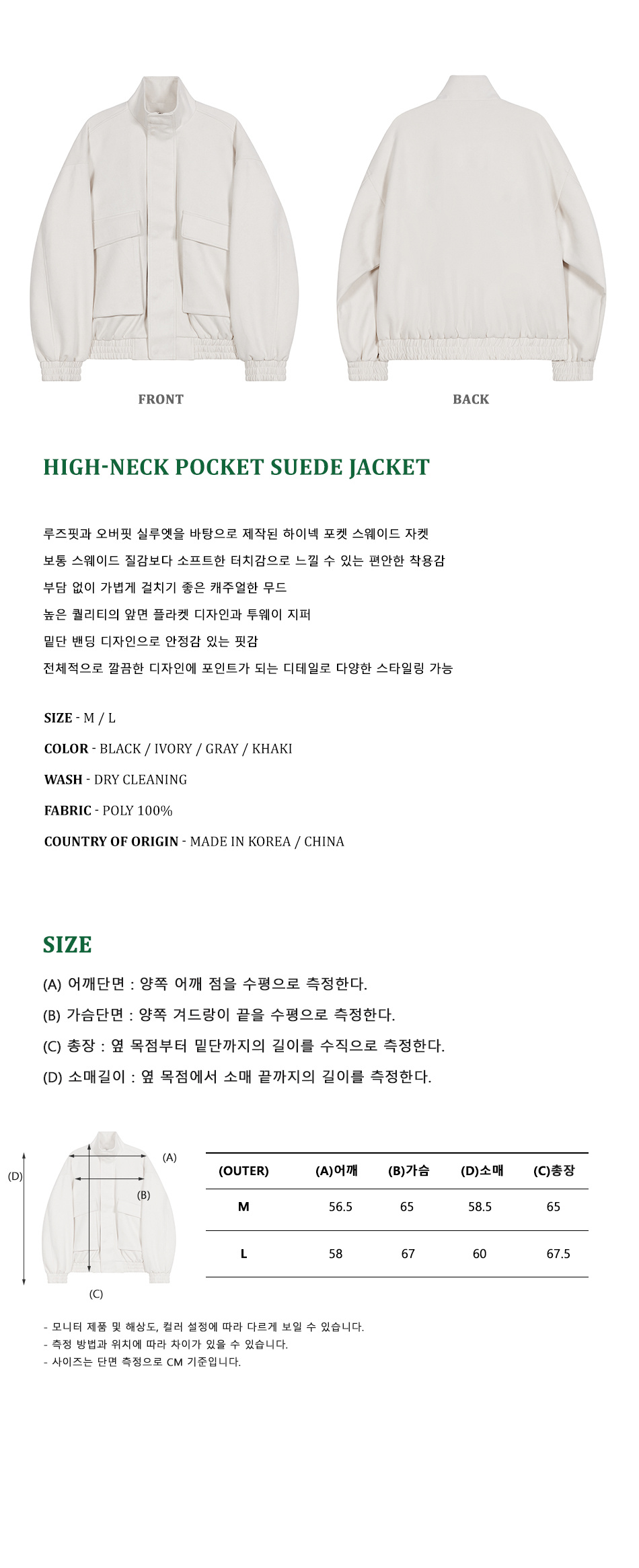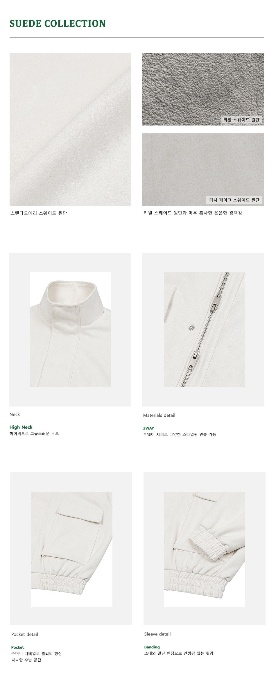87-STAN011 하이넥 포켓 스웨이드 자켓 아이보리