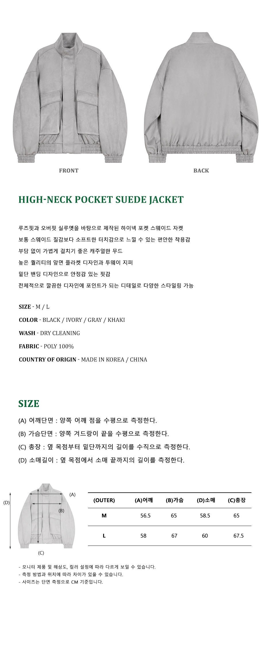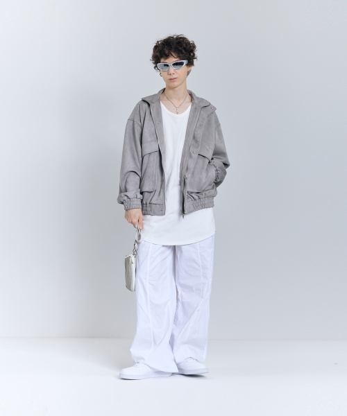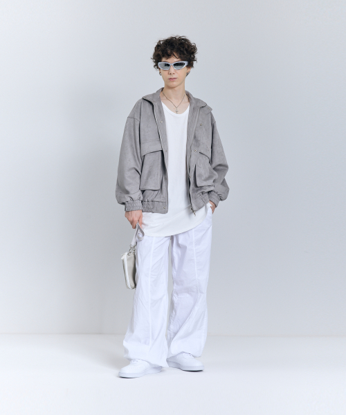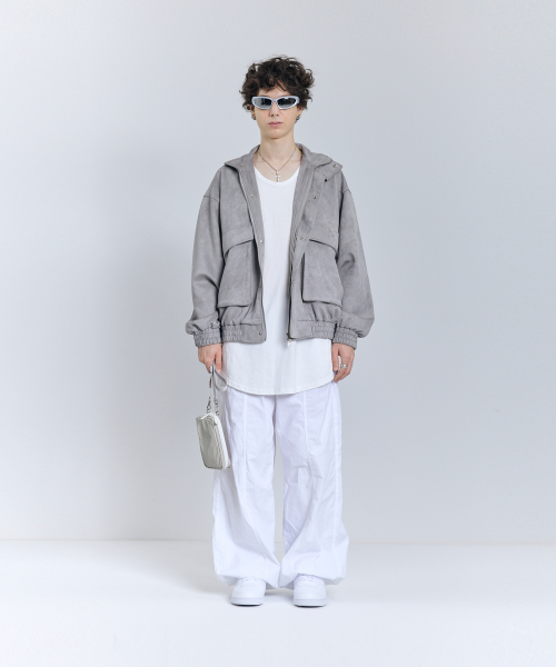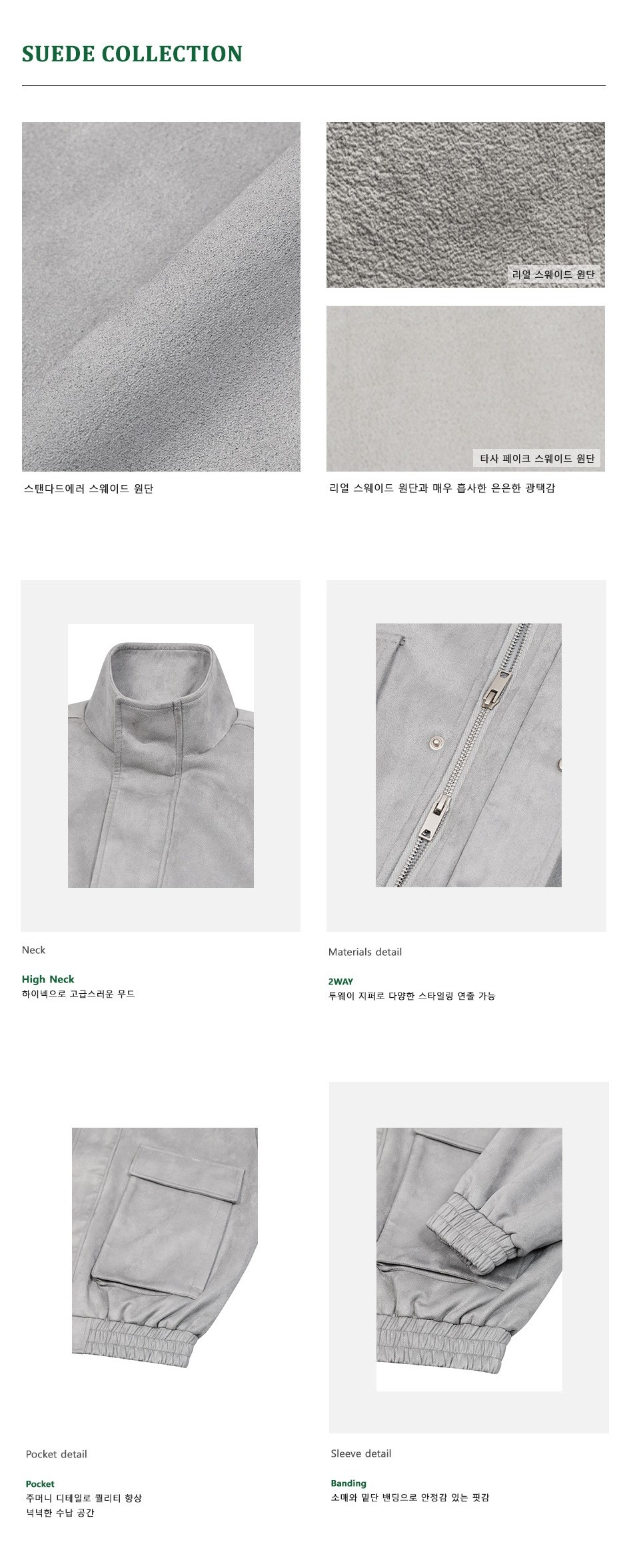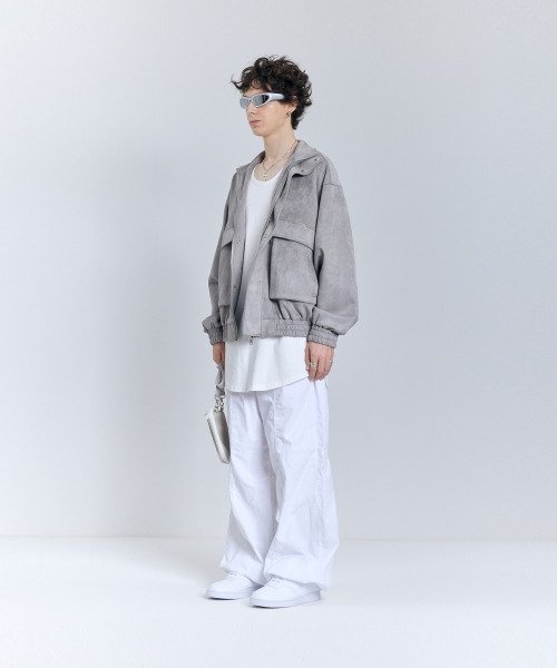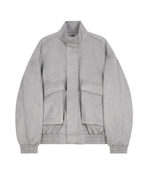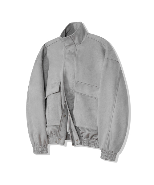 87-STAN011 하이넥 포켓 스웨이드 자켓 그레이