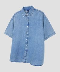 버튼 다운 오버핏 데님 하프 셔츠 [미디엄블루]