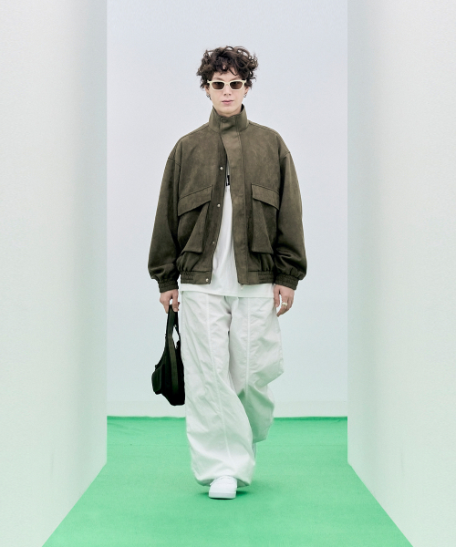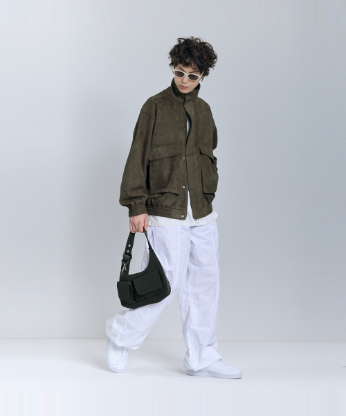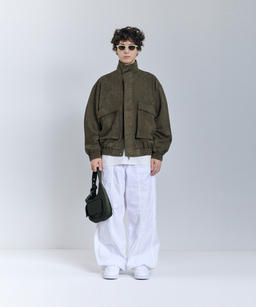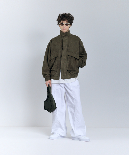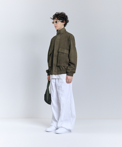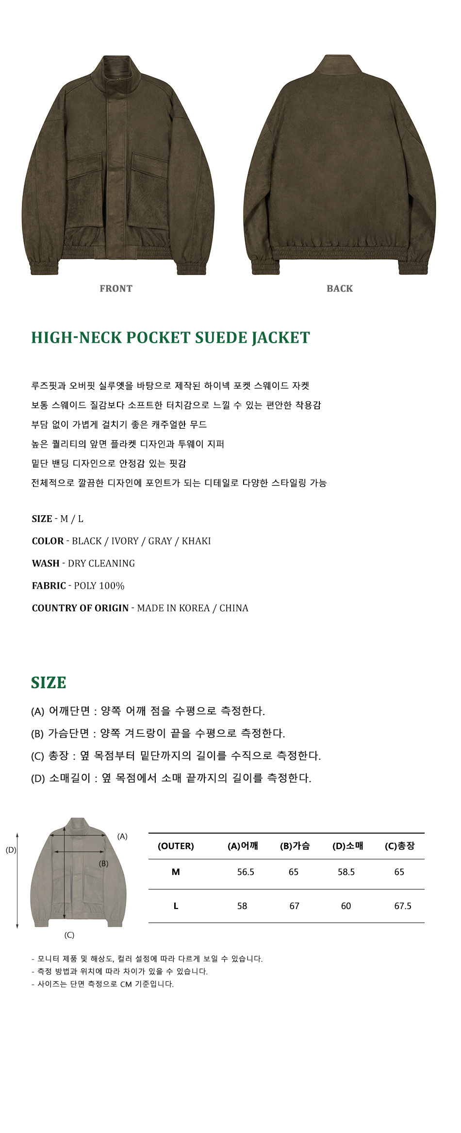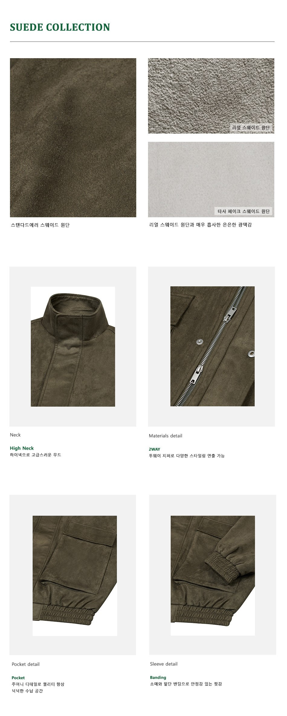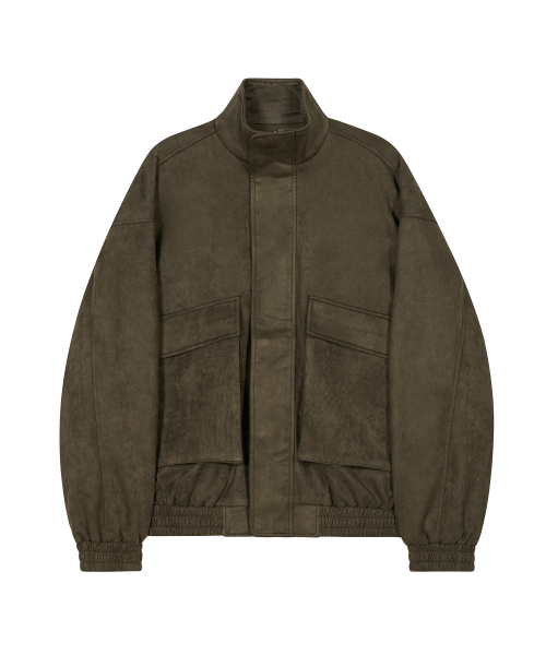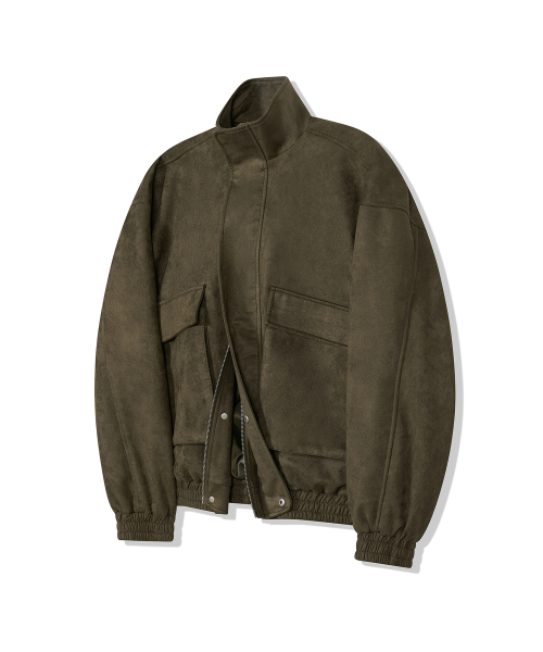 87-STAN011 하이넥 포켓 스웨이드 자켓 카키