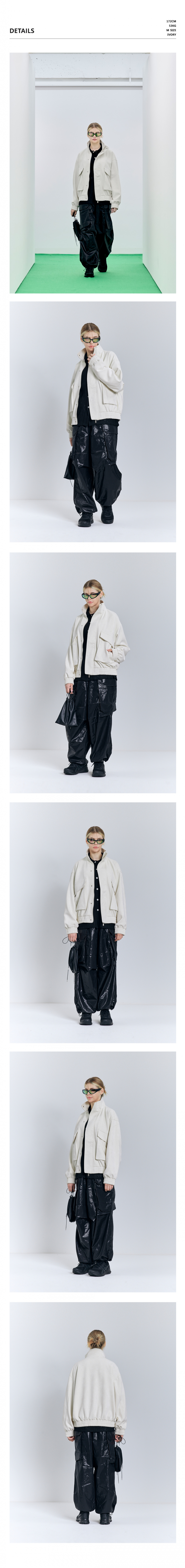 87-STAN011 하이넥 포켓 스웨이드 자켓 아이보리