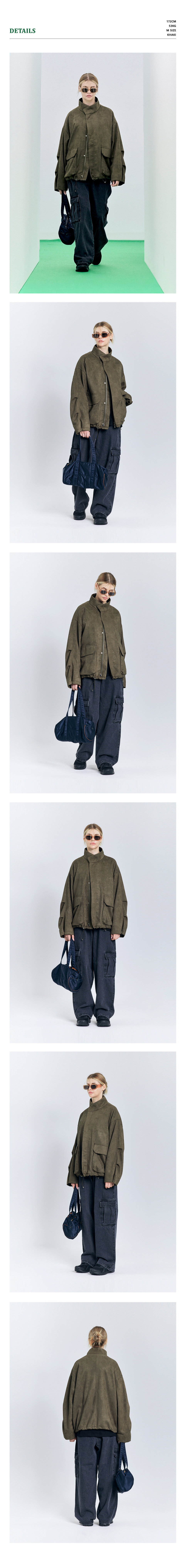 86-IRO330 커브 라인 히든 스웨이드 자켓 카키