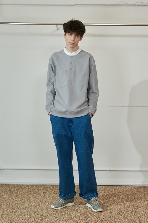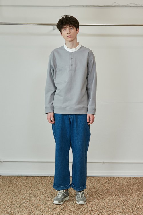 Forest Cotton Collar Button Pullover Gray