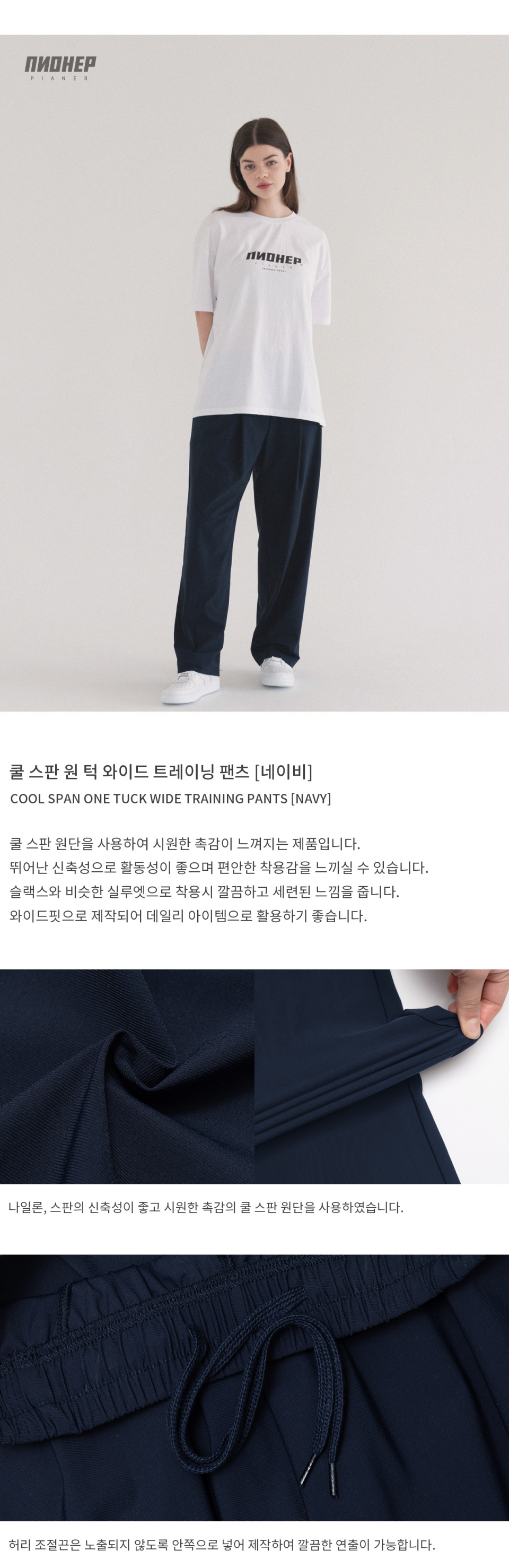 쿨 스판 원 턱 와이드 트레이닝 팬츠 (네이비)