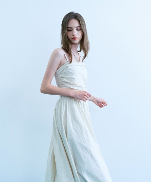 젤리 셔링 초커 롱 원피스 - 아이보리