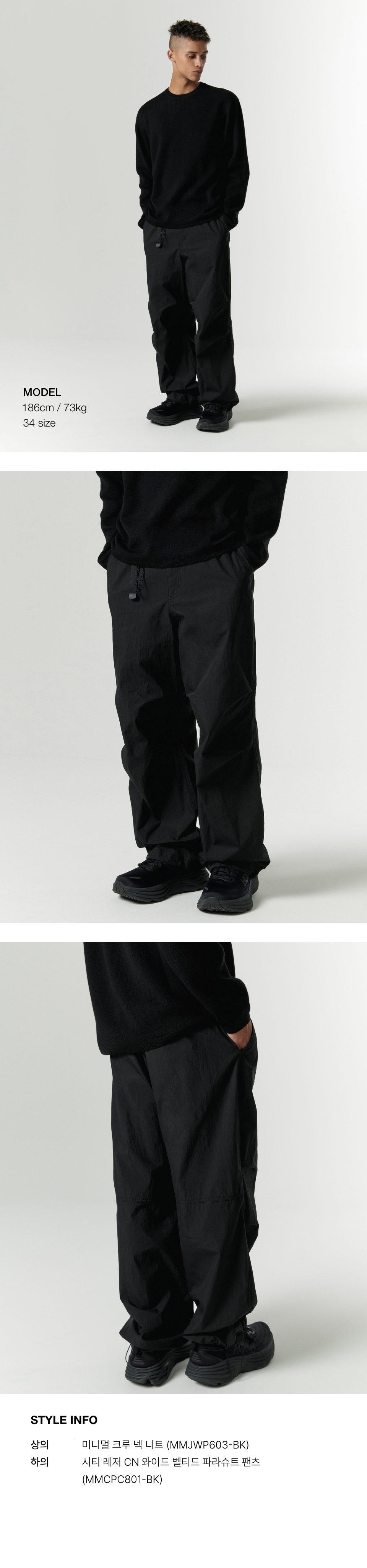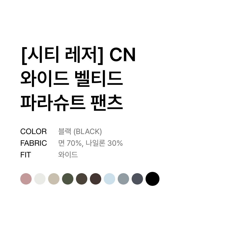 [시티 레저] CN 와이드 벨티드 파라슈트 팬츠 [블랙]