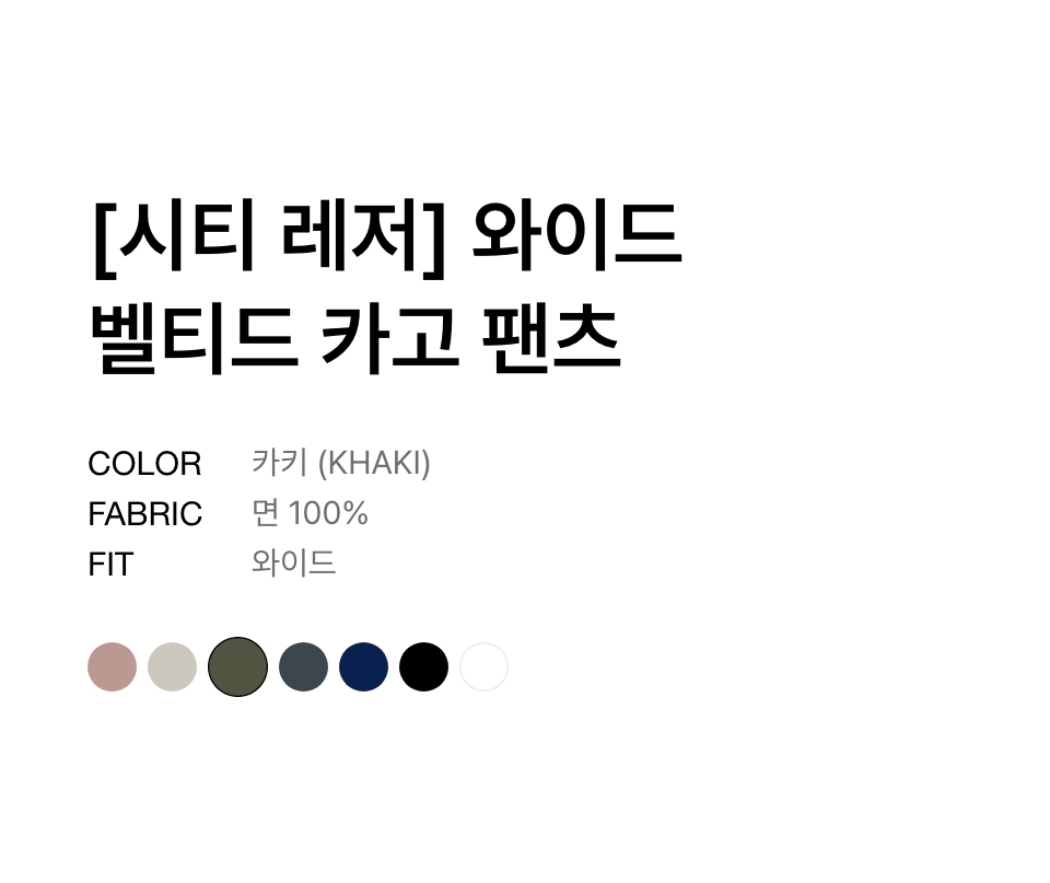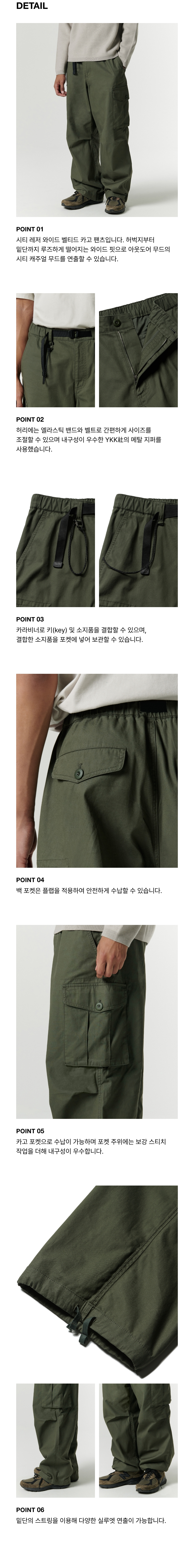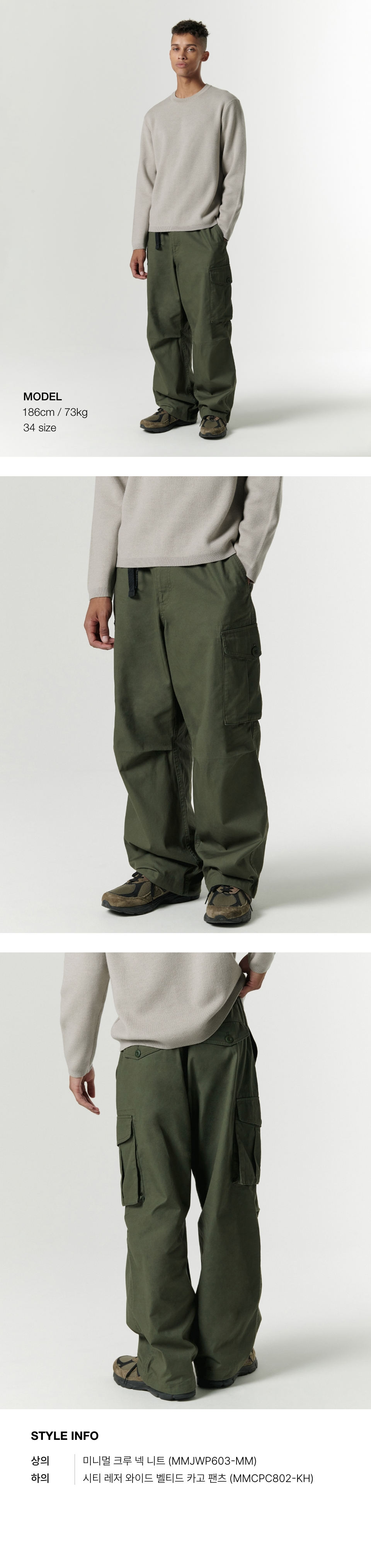 [시티 레저] 와이드 벨티드 카고 팬츠 [카키]