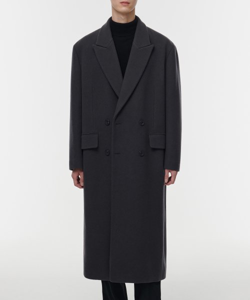 캐시미어 블렌드 대디 숄더 더블 롱 코트 [건메탈]