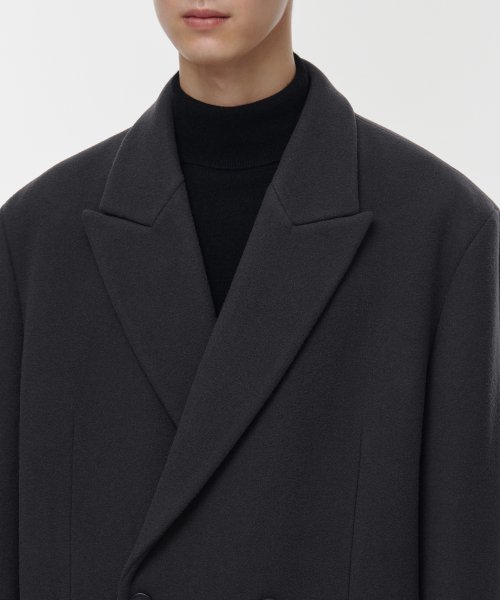캐시미어 블렌드 오버사이즈 더블 코트 [네이비]