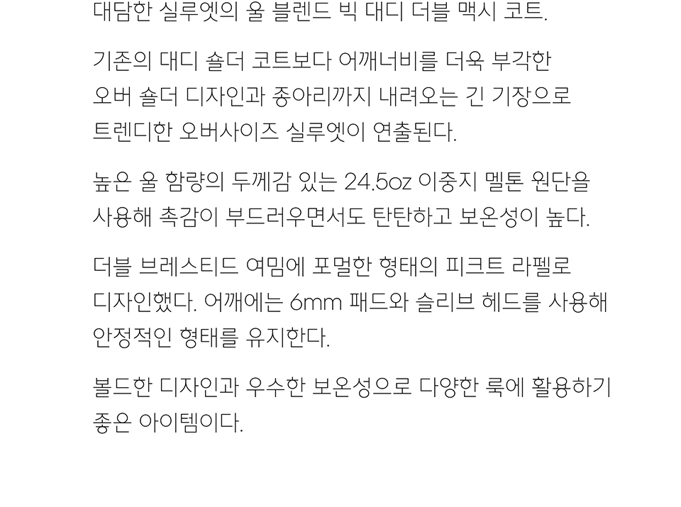 울 블렌드 빅 대디 더블 맥시 코트 [블랙]