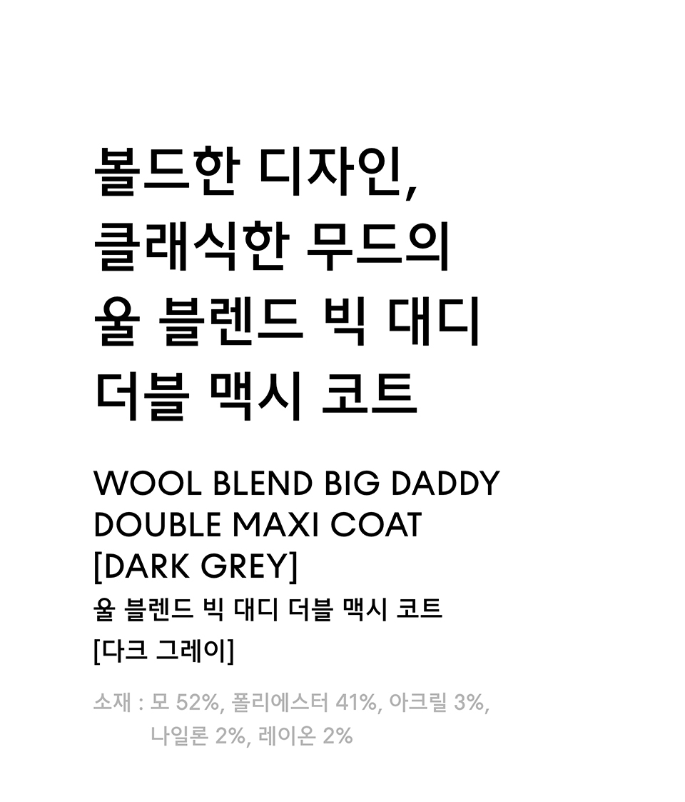 울 블렌드 빅 대디 더블 맥시 코트 [다크 그레이]