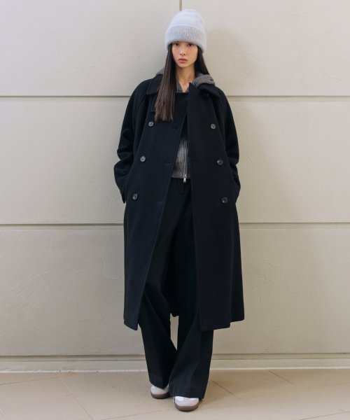 우먼즈 캐시미어 블렌드 트렌치 코트 [블랙]
