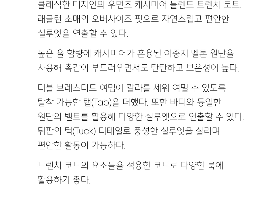 우먼즈 캐시미어 블렌드 트렌치 코트 [토프]