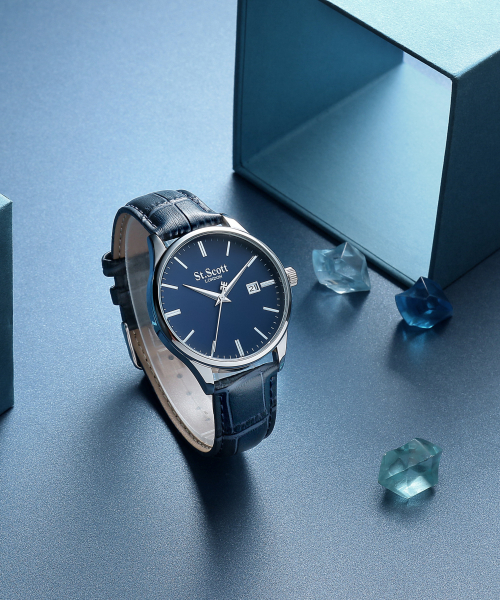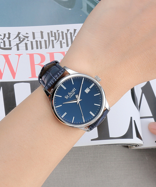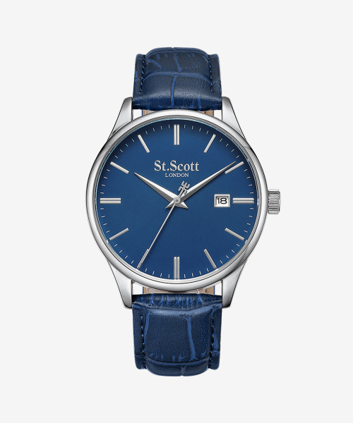 심플라인 데이트 가죽 시계 - 실버블루 / ST7109L-SLL