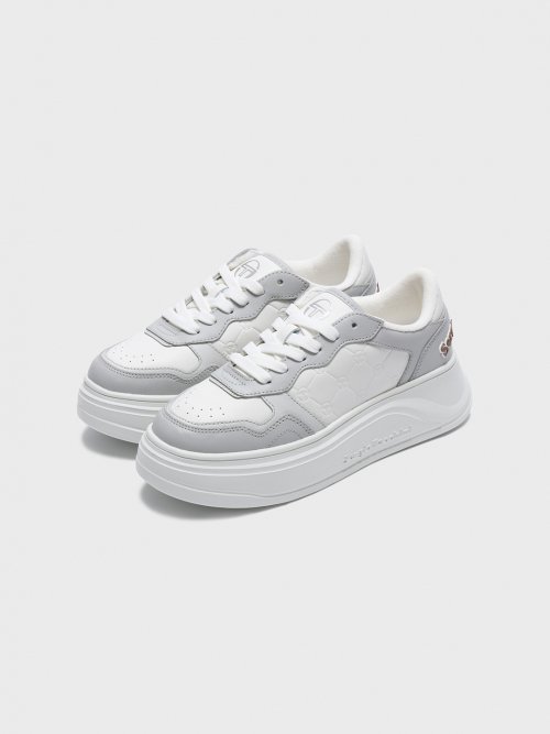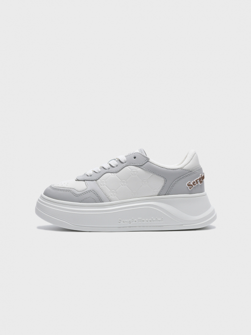 - 라파챠 LOGO를 모노그램 패턴으로 재해석해 클래식한 포인트를 강조한 키높이형 컵솔 스니커즈