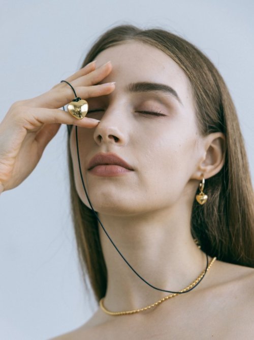 청키 하트 펜던트 끈 목걸이 - 골드