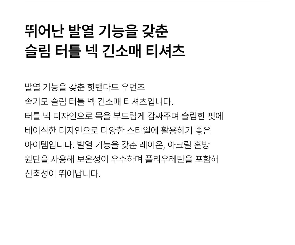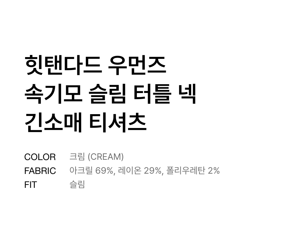 [힛탠다드] 우먼즈 속기모 슬림 터틀 넥 긴소매 티셔츠 [크림]
